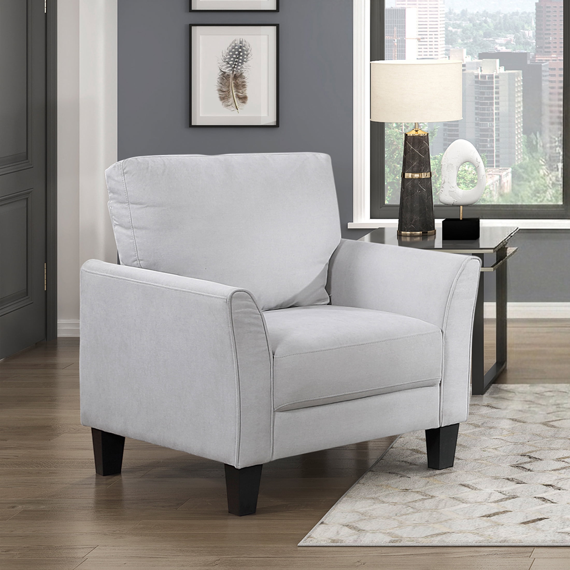 Modern Wide Single Fabric Accent Chair with Cushioned Seat & Wooden ...