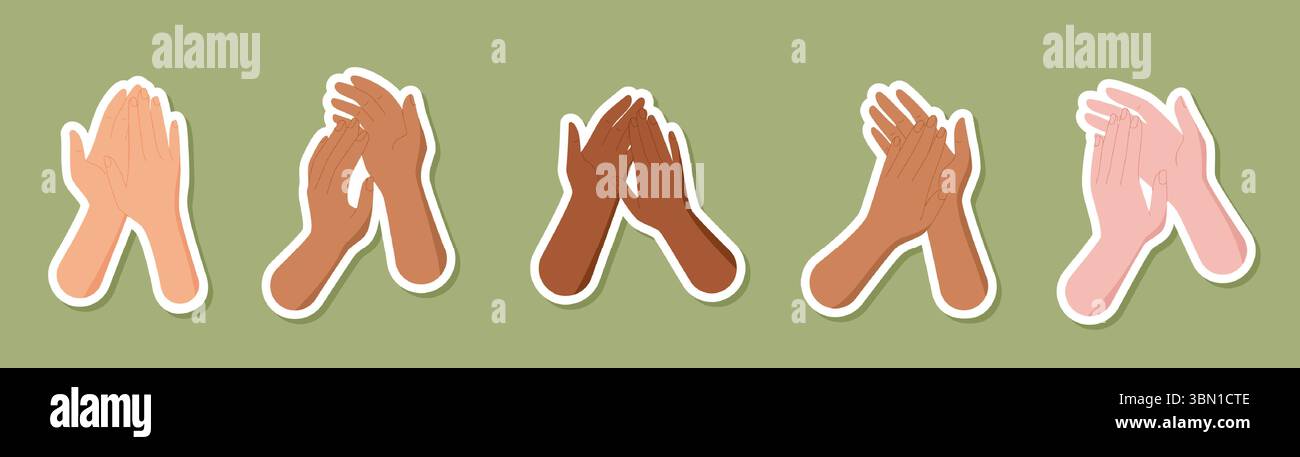 Colorful Multicultural Clapping Hands Stickers Sticker Set Stock Vector ...