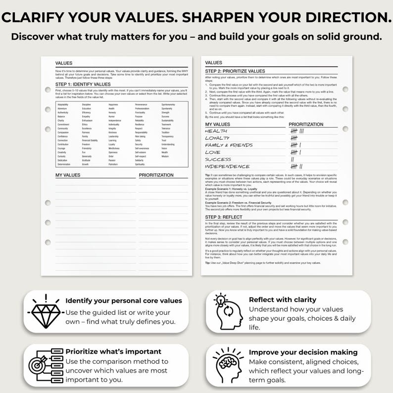Core Values A5 Planner Inserts | 11 Sheets to Define Your Values ...