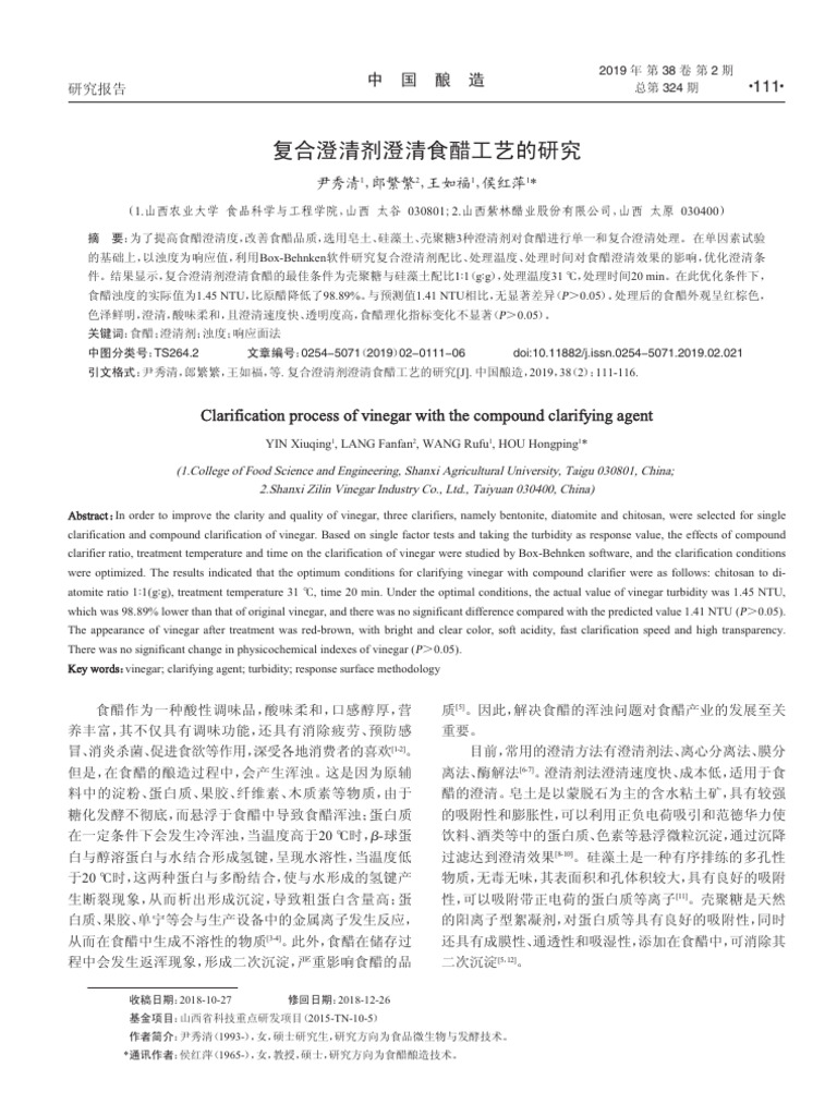 Clarification Process of Vinegar With The Compound Clarifying Agent | PDF