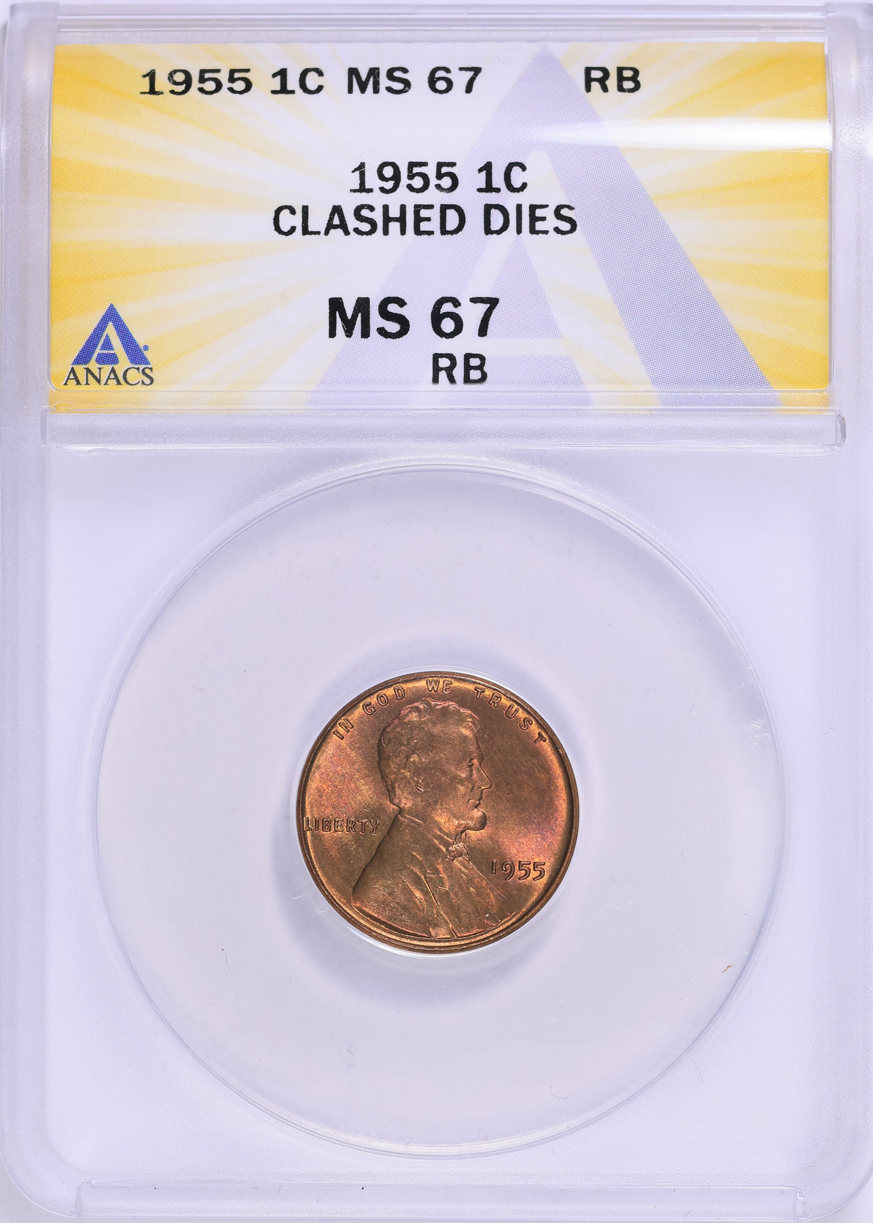 Mint Error 1955 Lincoln Cent Clashed Dies ANACS MS-67 RB | ANACS Cert ...