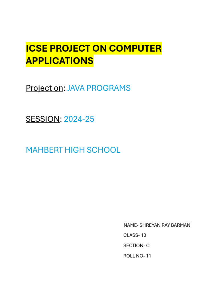 COMPUTER PROJECT || CLASS 10 || SIMPLE PROJECT WORK || pdf in ...