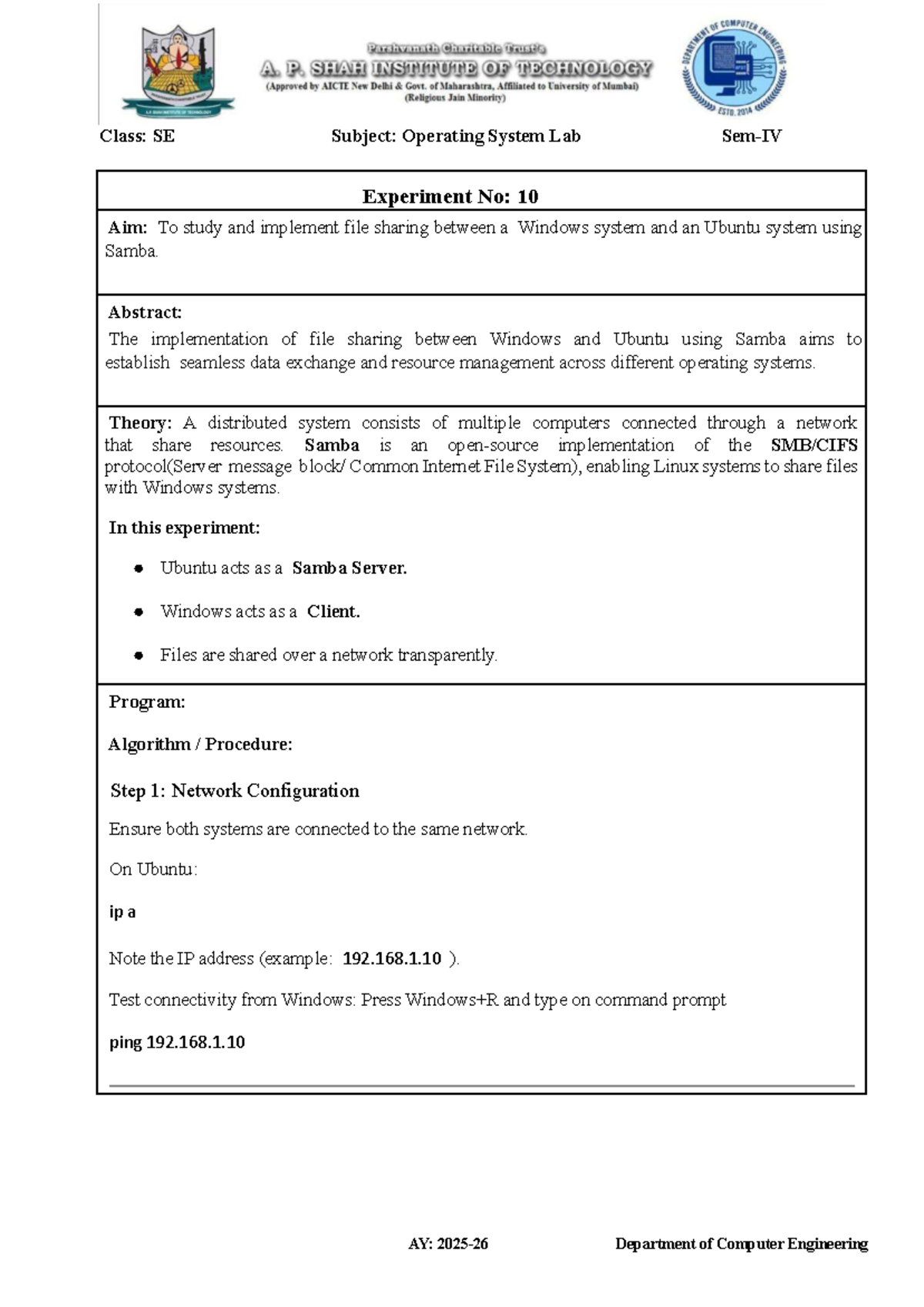 OS Lab Exp 10: File Sharing Between Windows & Ubuntu Using Samba - Studocu