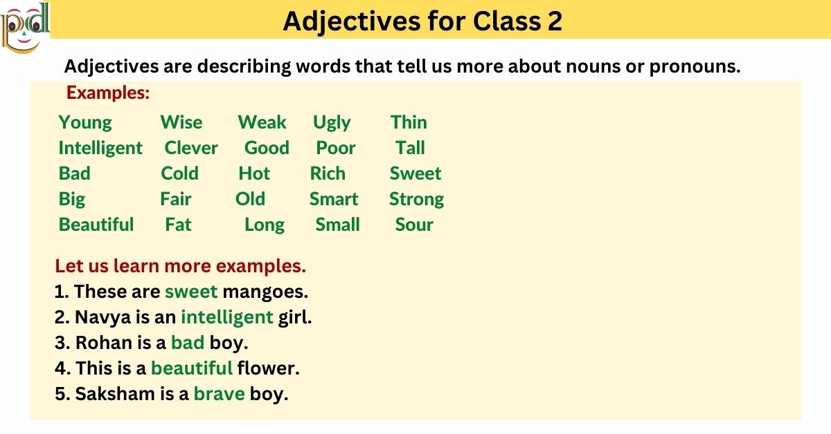 Adjectives for Class 2 | Examples, Worksheet, & Pdf