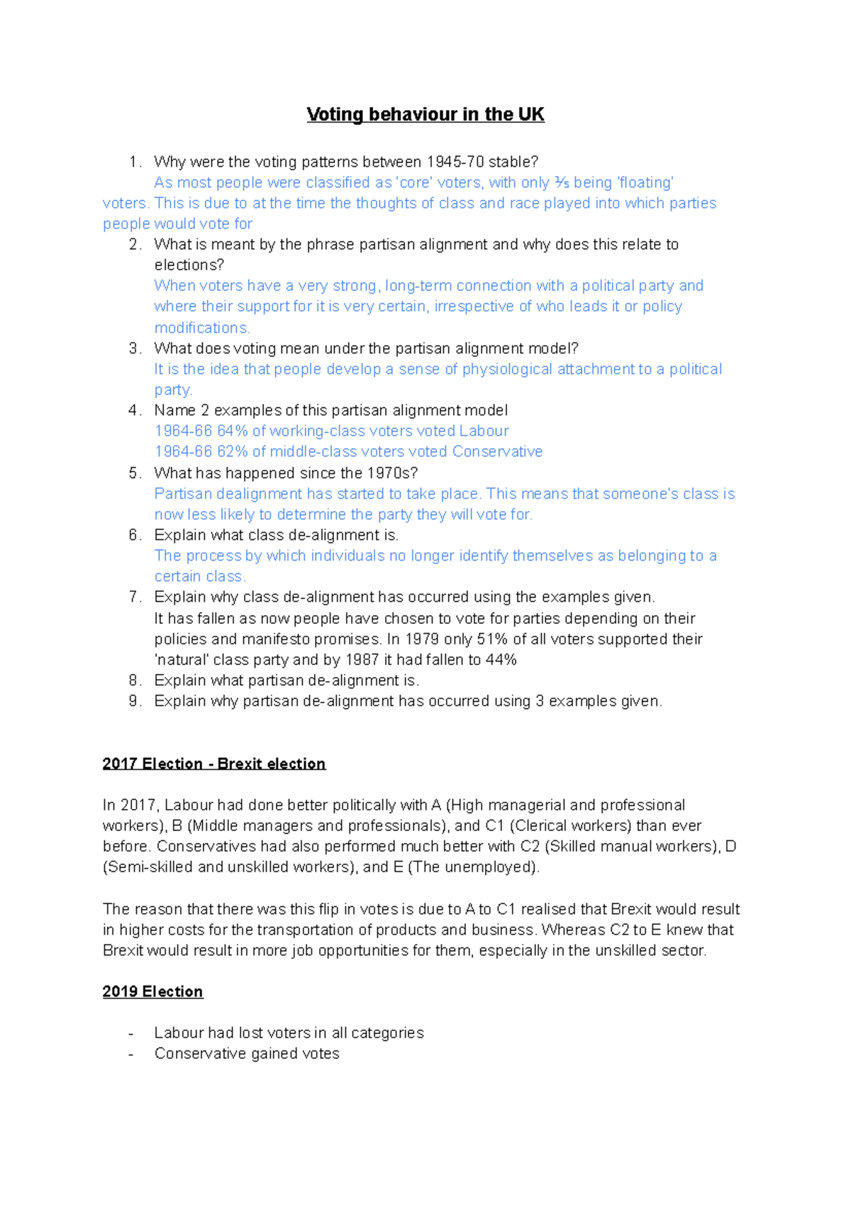 UK Voting Behaviour Analysis: Class Dealignment from 1945 to 2019 - Studocu