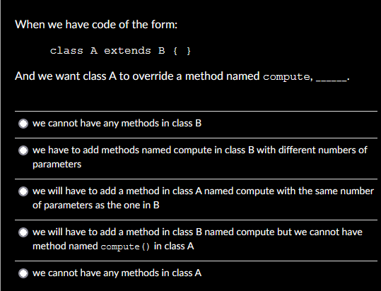 Solved When we have code of the form: class A extends B { } | Chegg.com