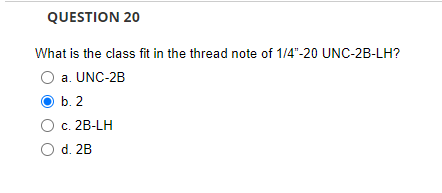 Solved What is the class fit in the thread note of 1/4′′−20 | Chegg.com