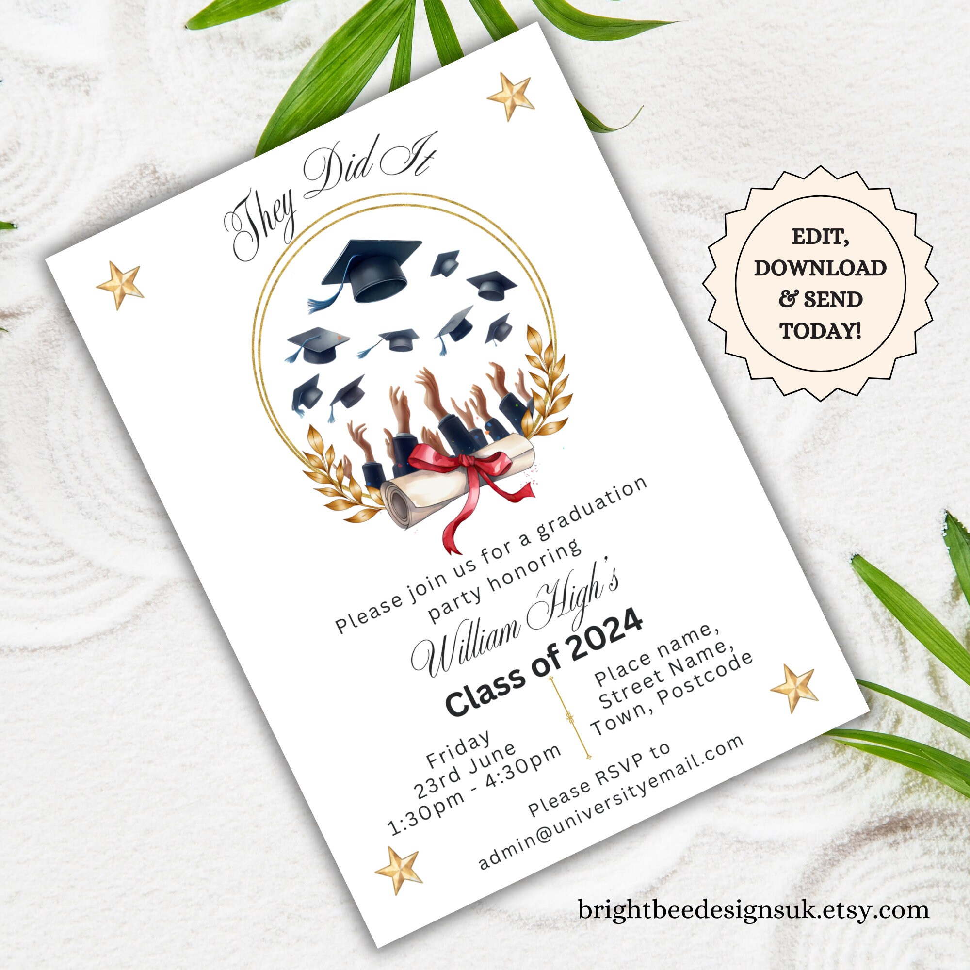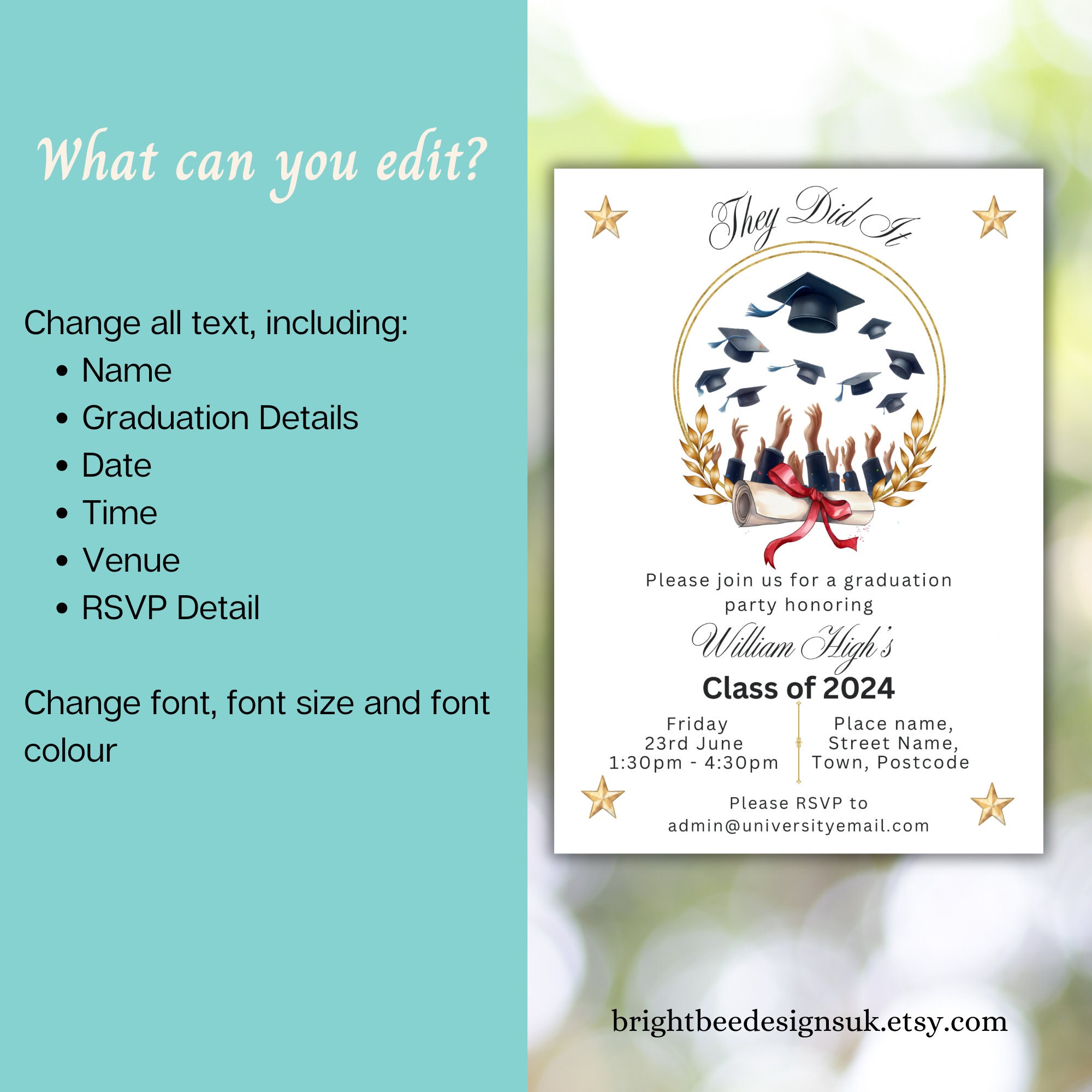 Graduation Invitation Template Printable Editable Electronic Graduation ...