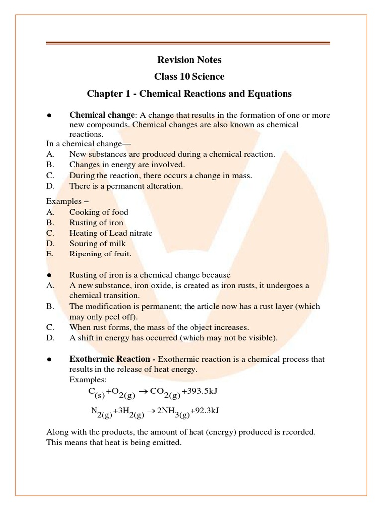 CBSE Class 10 Science Chapter 1 Notes | PDF | Chemical Reactions ...