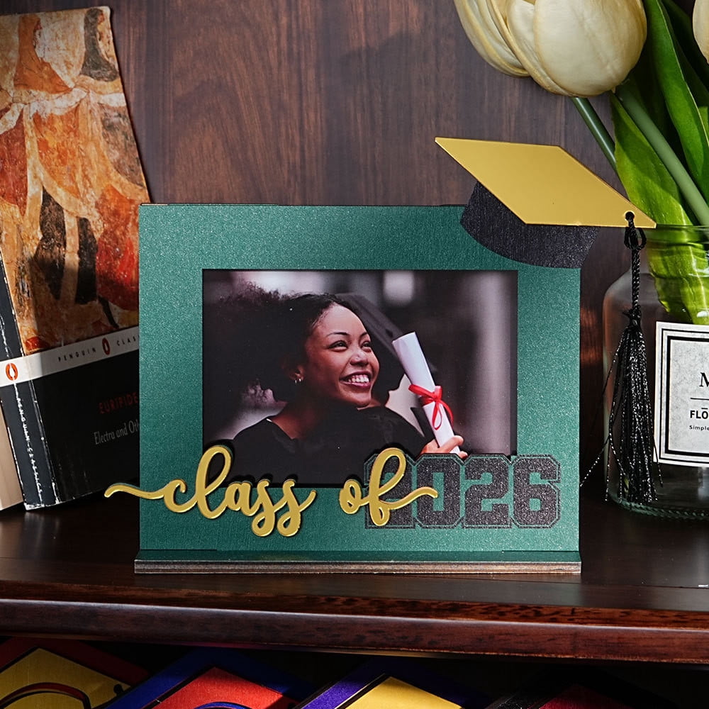 Bachelor Cap & Tassel Graduation Frame, Green Wooden Desktop Ornament ...
