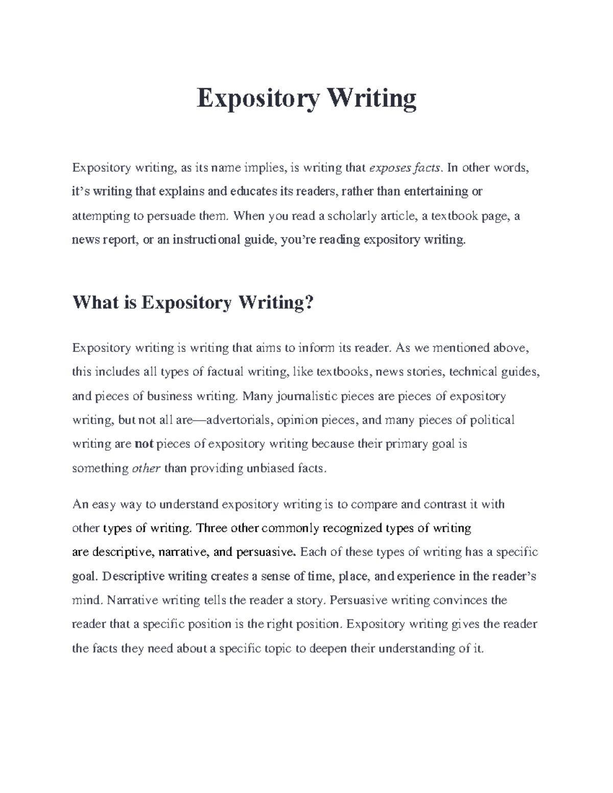 Expository Writing 101: Types, Techniques, and Examples - Studocu