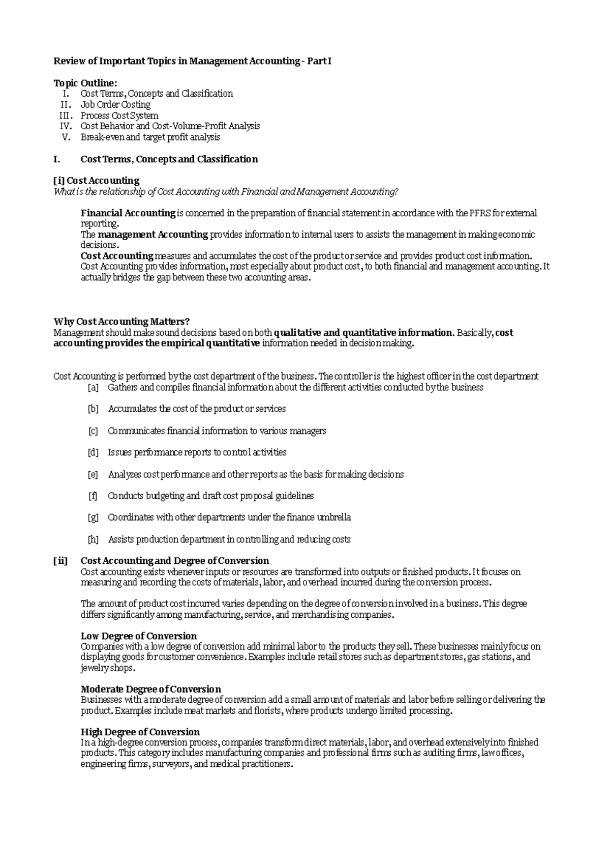 Management Accounting (ACCT 101) - Key Concepts & Cost Classification ...