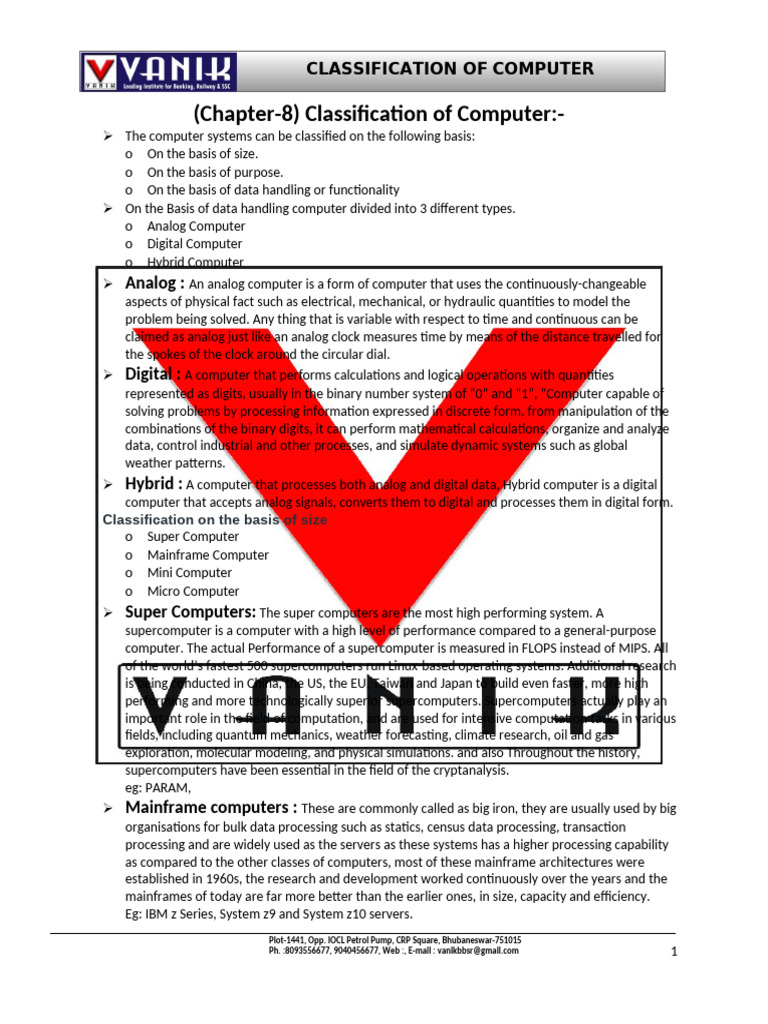 Classification of Computers Explained | PDF | Mainframe Computer ...