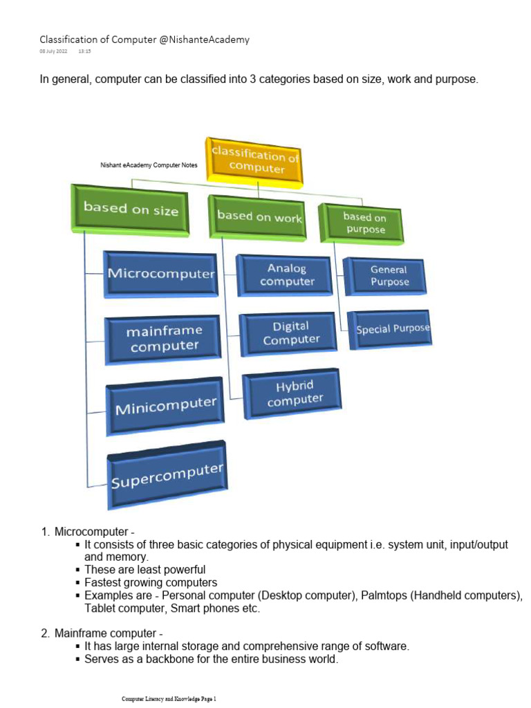 Types and Classification of Computers | PDF | Personal Computers ...