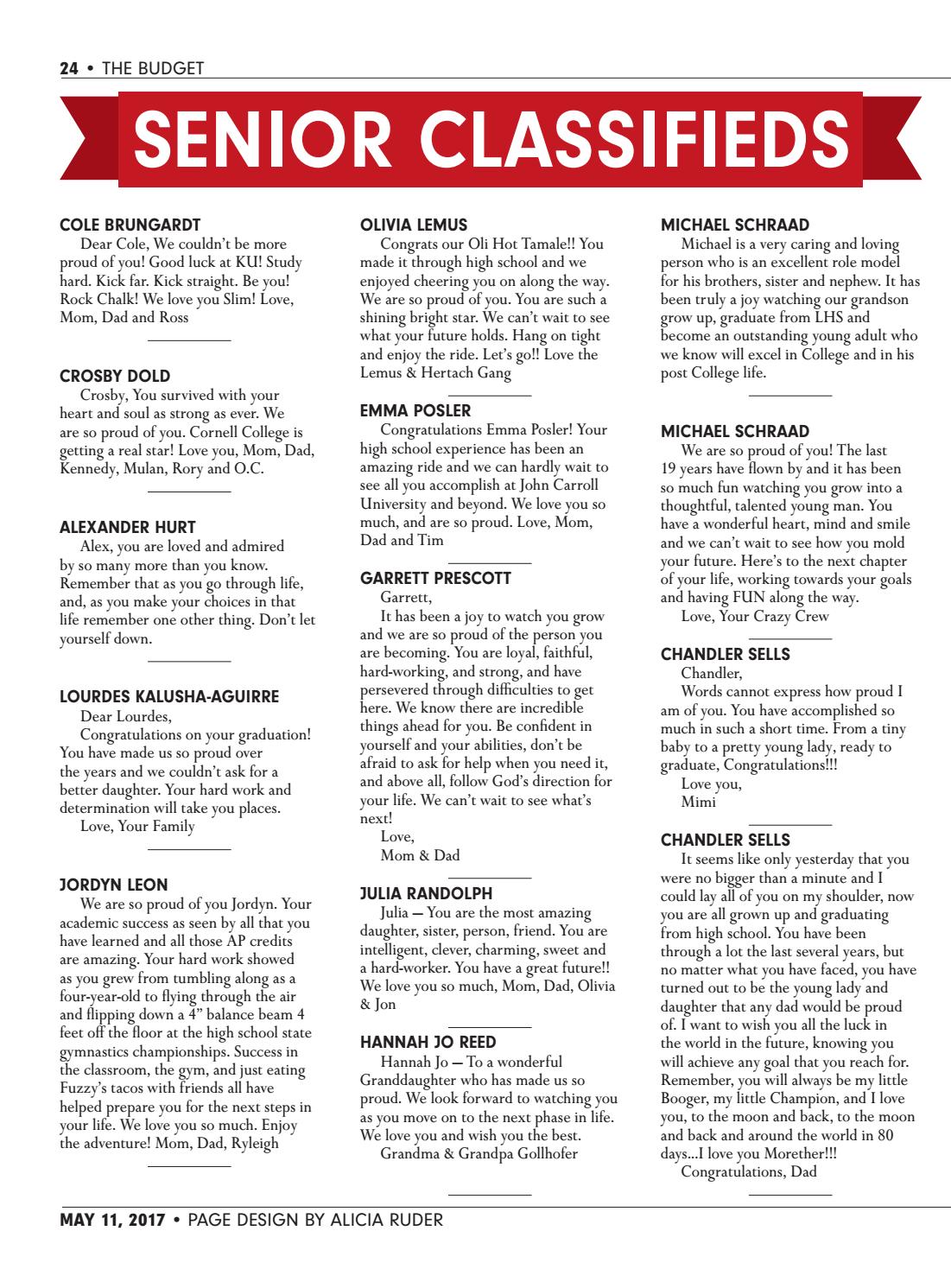 Senior Classifieds Example by LHS Budget - Issuu