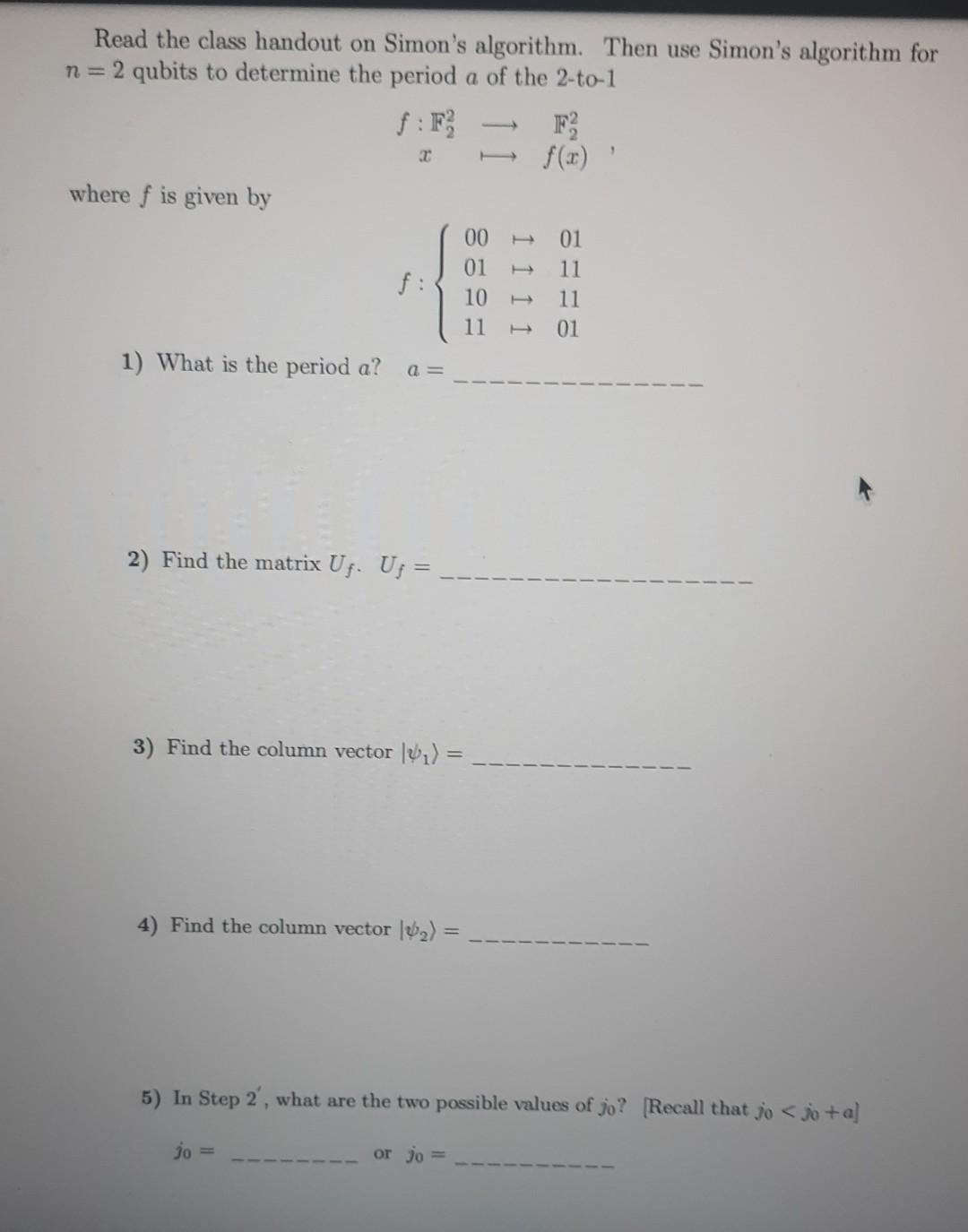 Solved Read the class handout on Simon's algorithm. Then use | Chegg.com