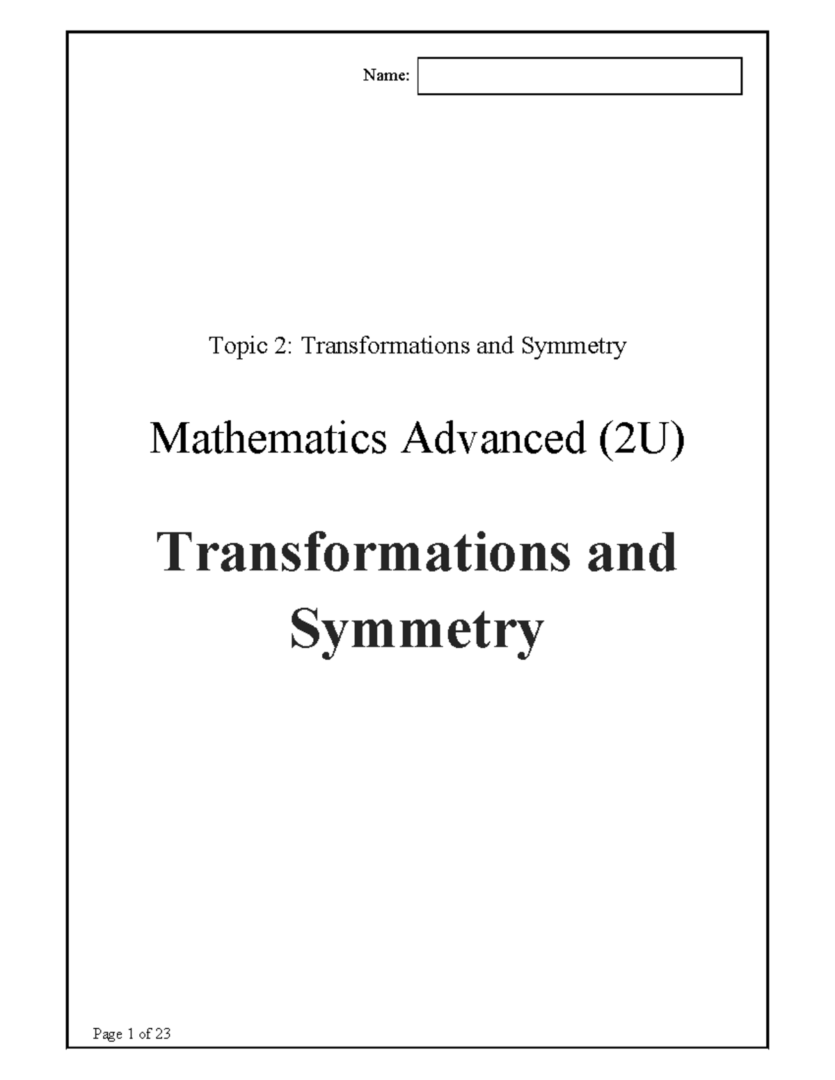 Transformations and Symmetry in Mathematics (2U) - Topic 2 Notes - Studocu