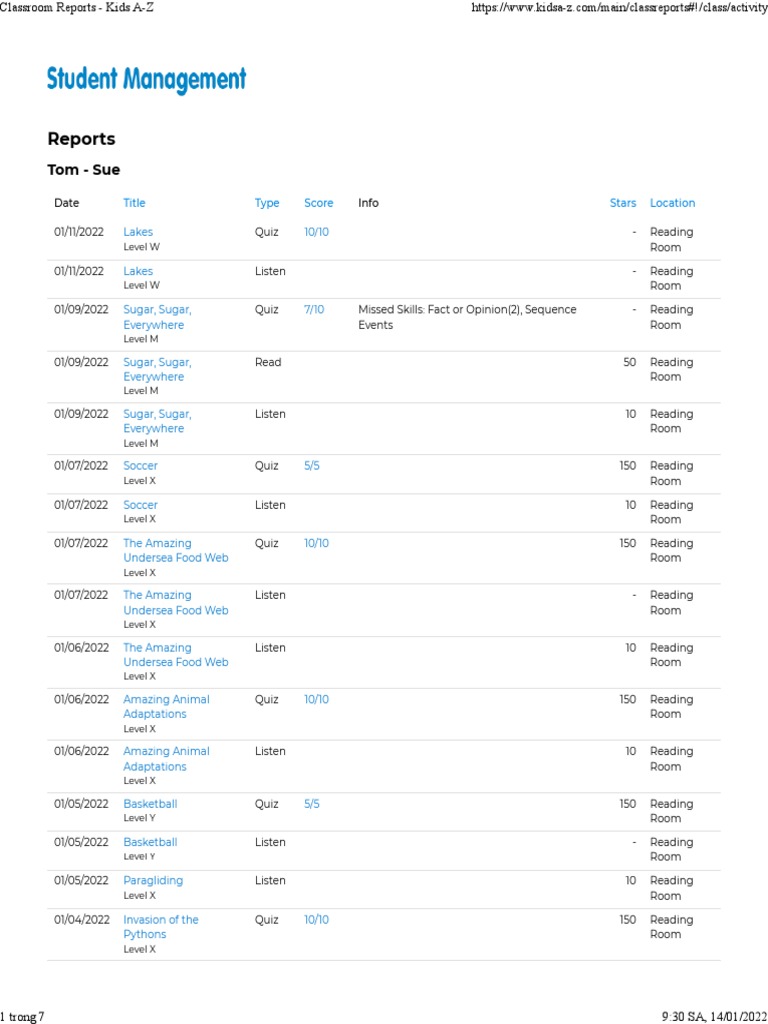 Kids A-Z Classroom Reports Overview | PDF