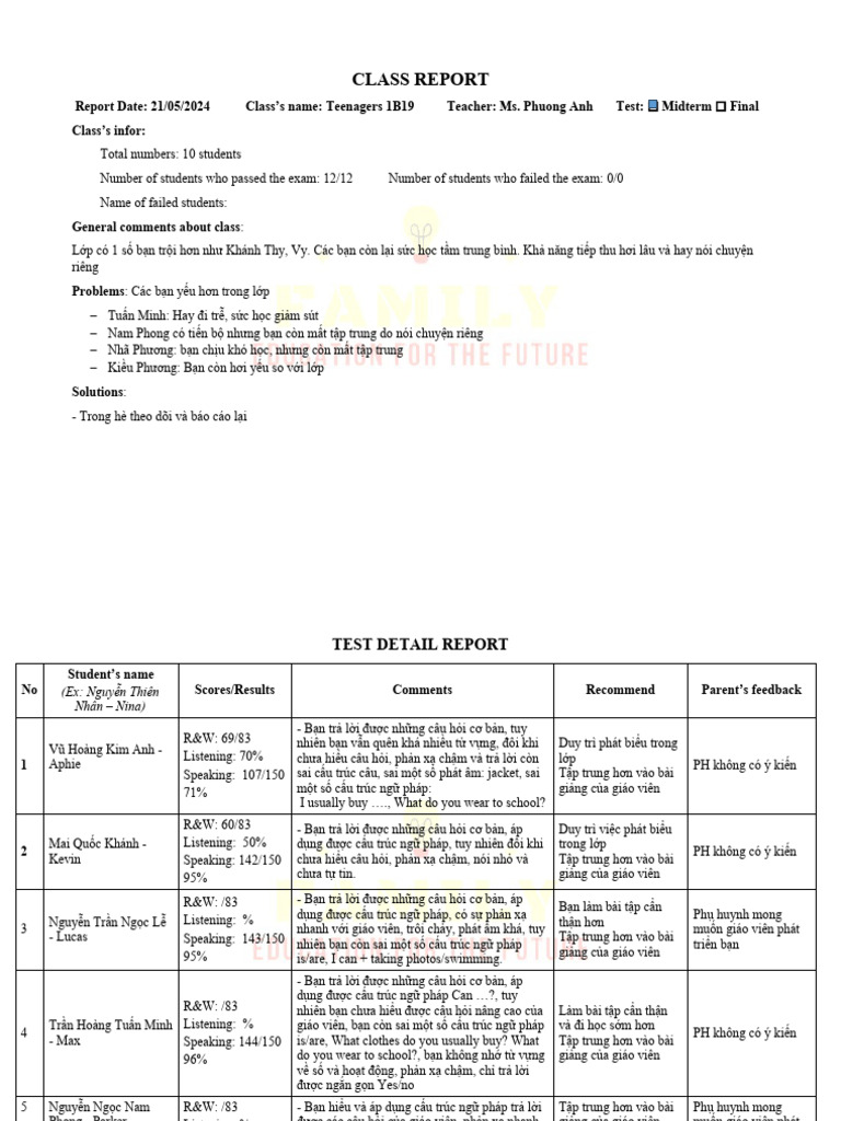 CLASS REPORT-afterMidtermA-TEEN2A8 | PDF