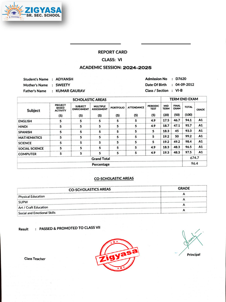 Annual Report Card Format (Class 2 To 8) 1 | PDF
