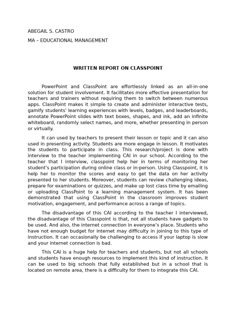 CAI Classpoint Written Report | PDF
