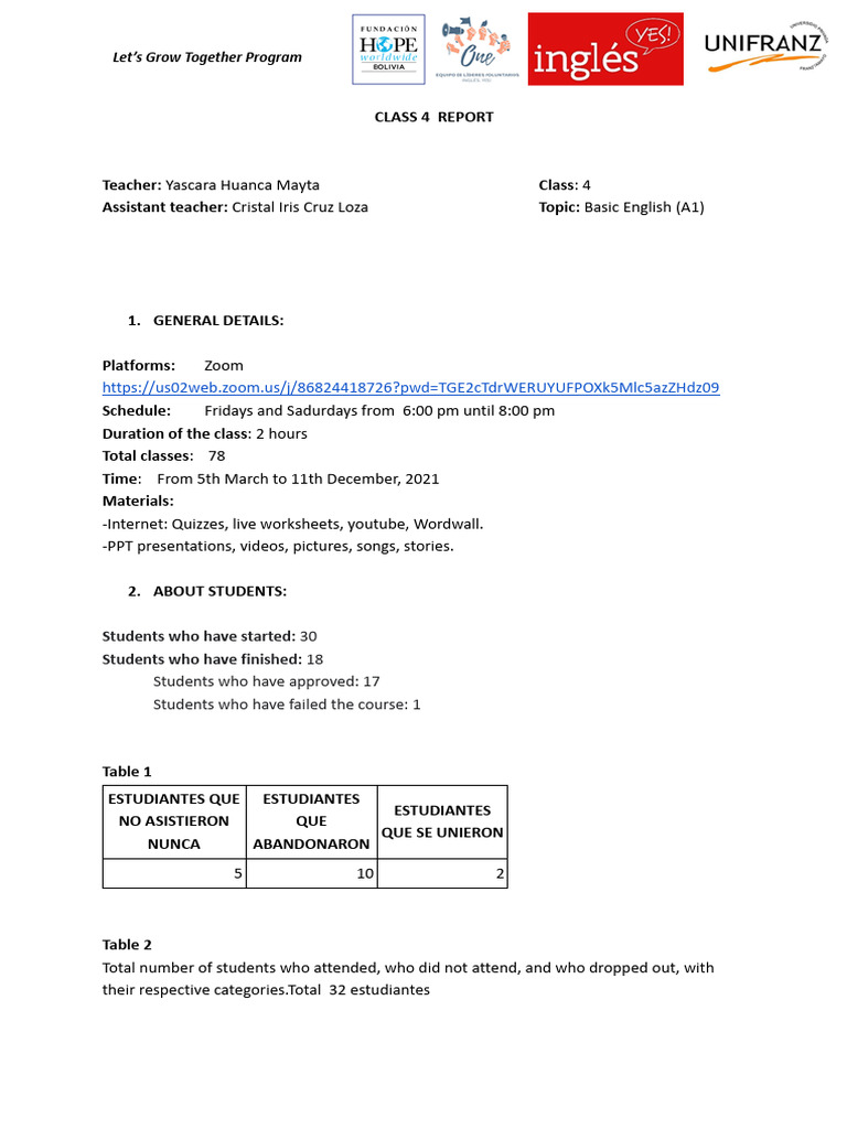 CLASS 4 REPORT | PDF | Vocabulary | Learning