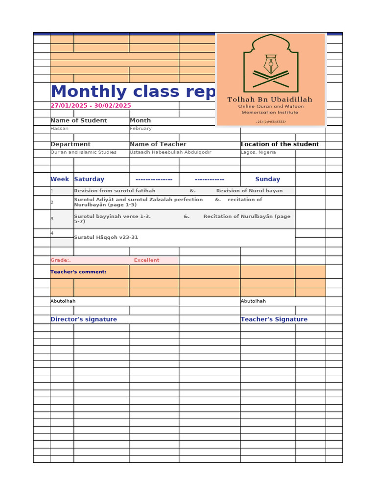 Class Teacher's Report | PDF