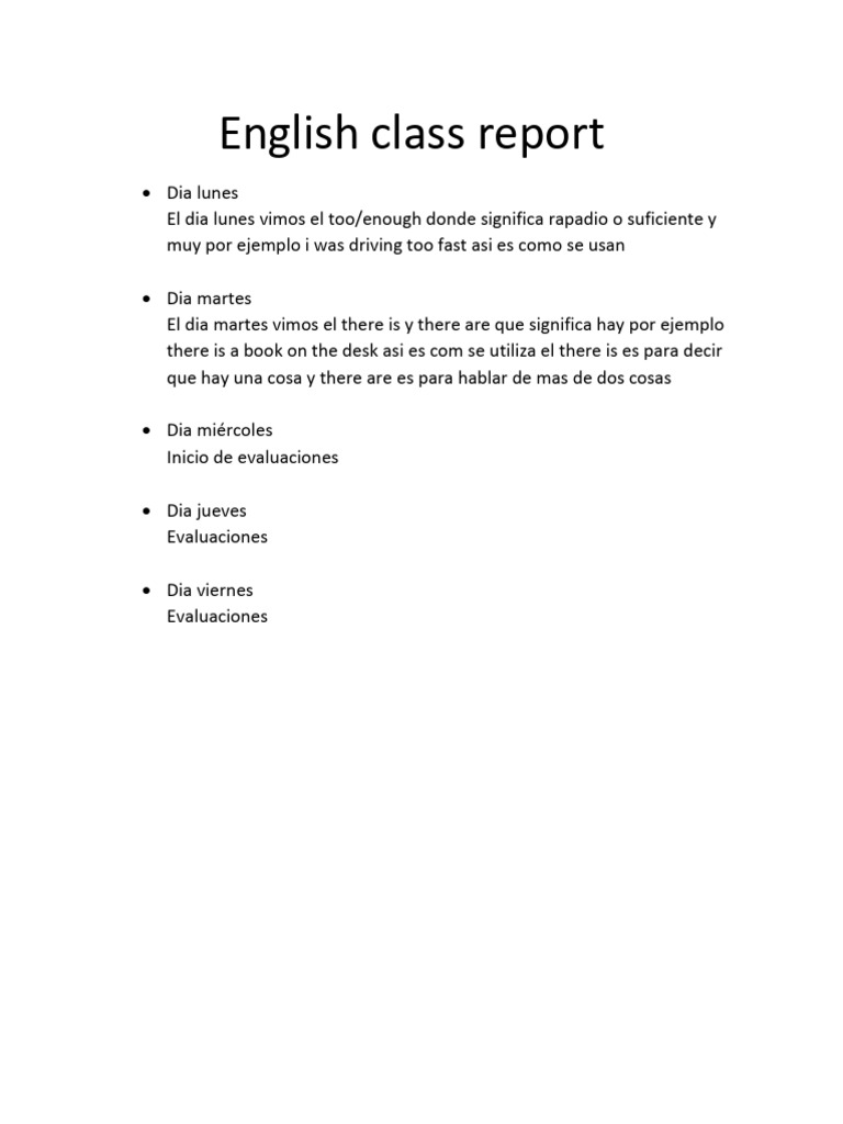 English Class Report 7 | PDF