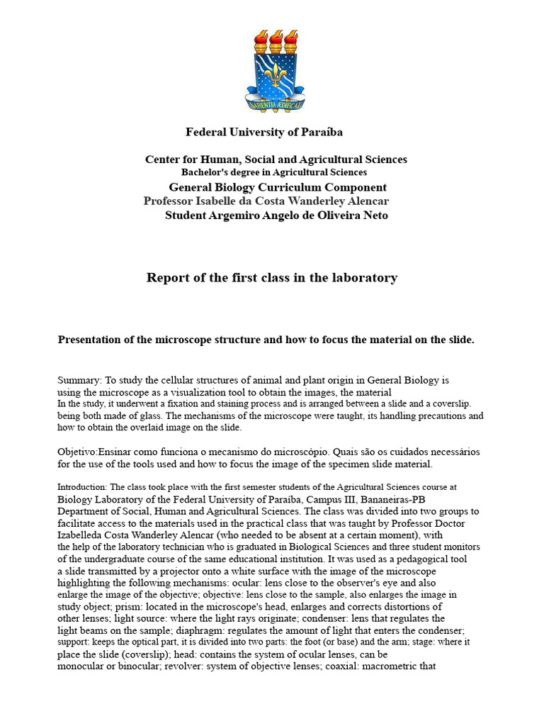 Practical Class Report | PDF | Microscopy | Light