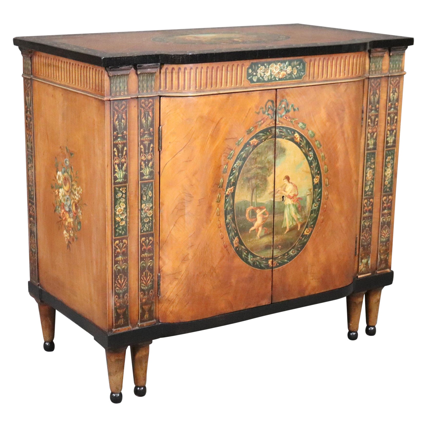 Fine Satinwood inlaid and Painted 2 door Commode by Maple and Co For ...