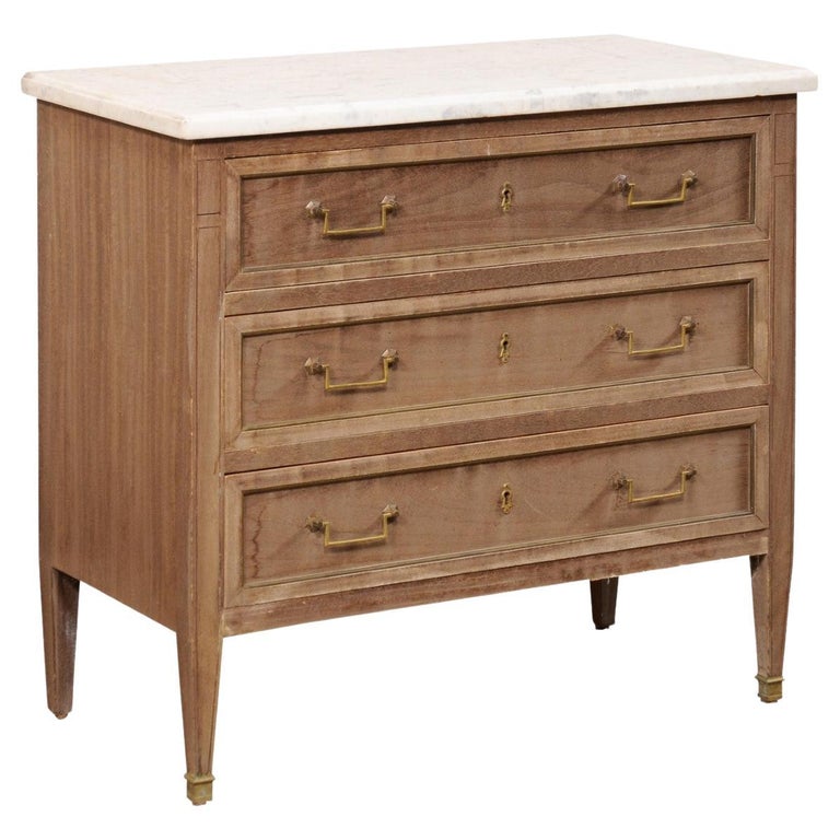 French Neoclassic Style Commode W/White Marble Top and Brass Trimmings ...