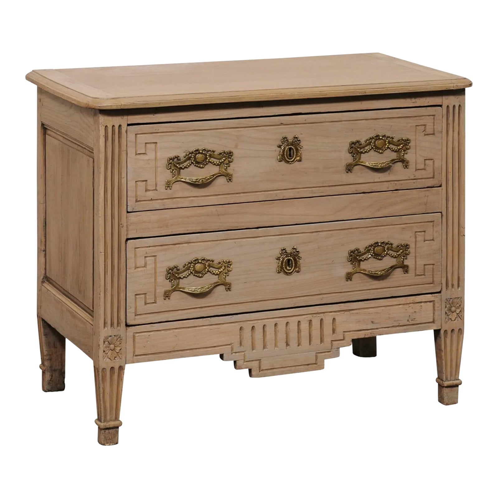 Neoclassic French Flute-Carved Commode, Bleached w/Grey Top and Accent ...