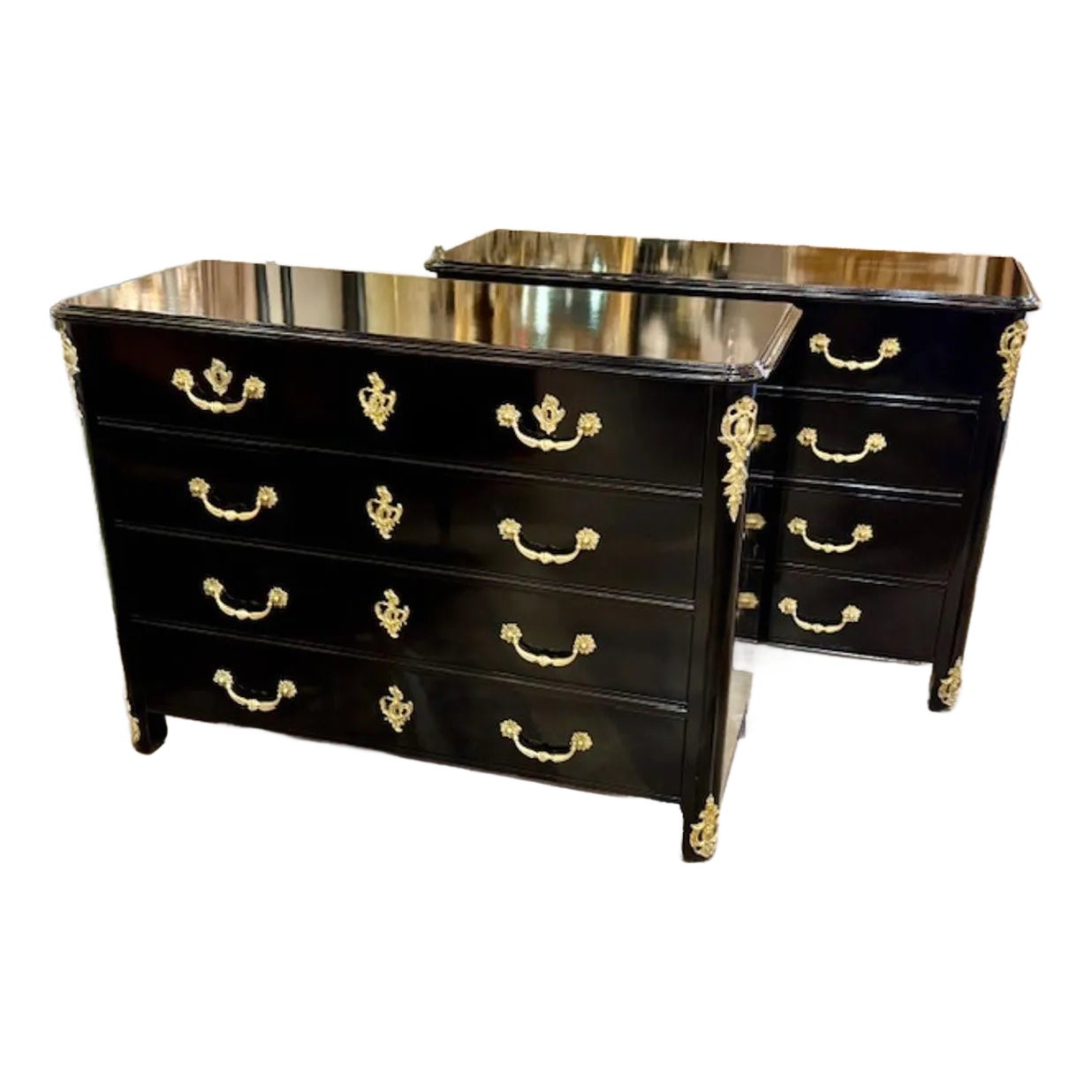 Pair of Regence' Style Black Lacquered and Bronze Commodes | Chairish