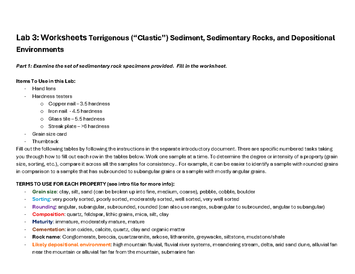 LAB 3: Worksheets on Terrigenous Sediment & Sedimentary Rocks - Studocu