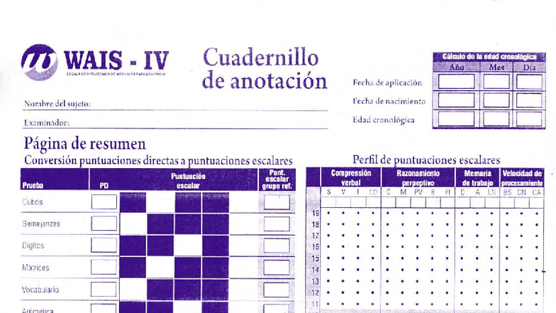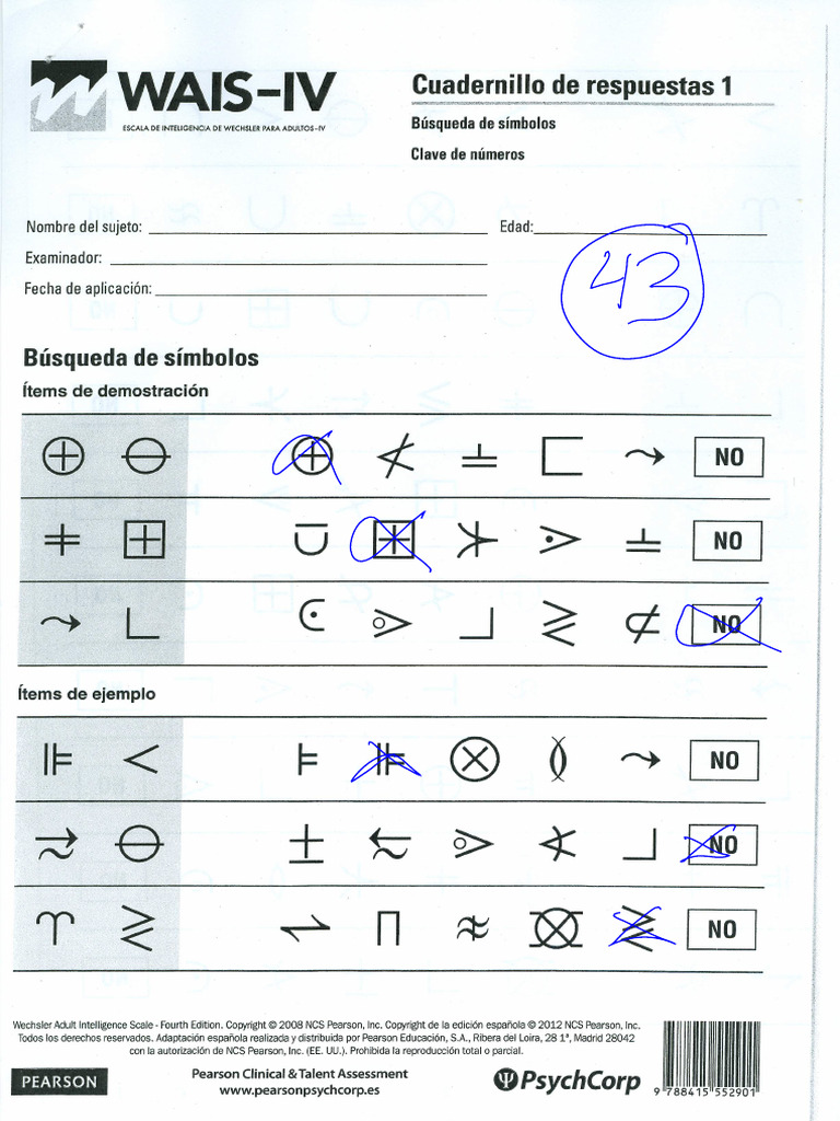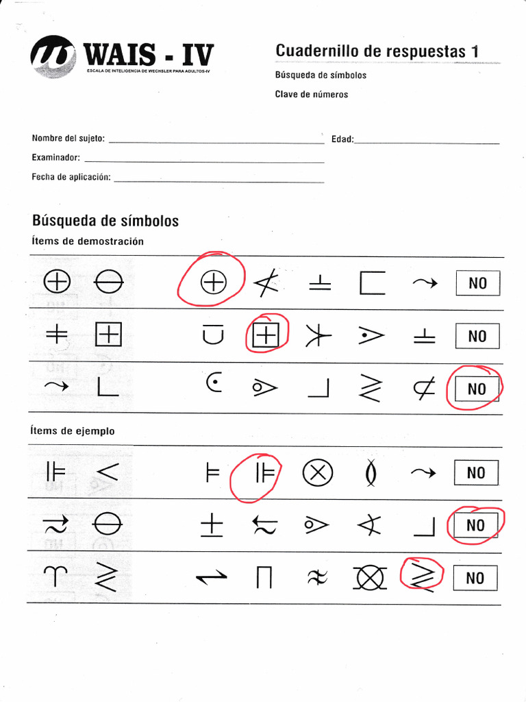 Búsqueda de Símbolos y Claves en WAIS IV - Cuadernillo Respuestas - Studocu