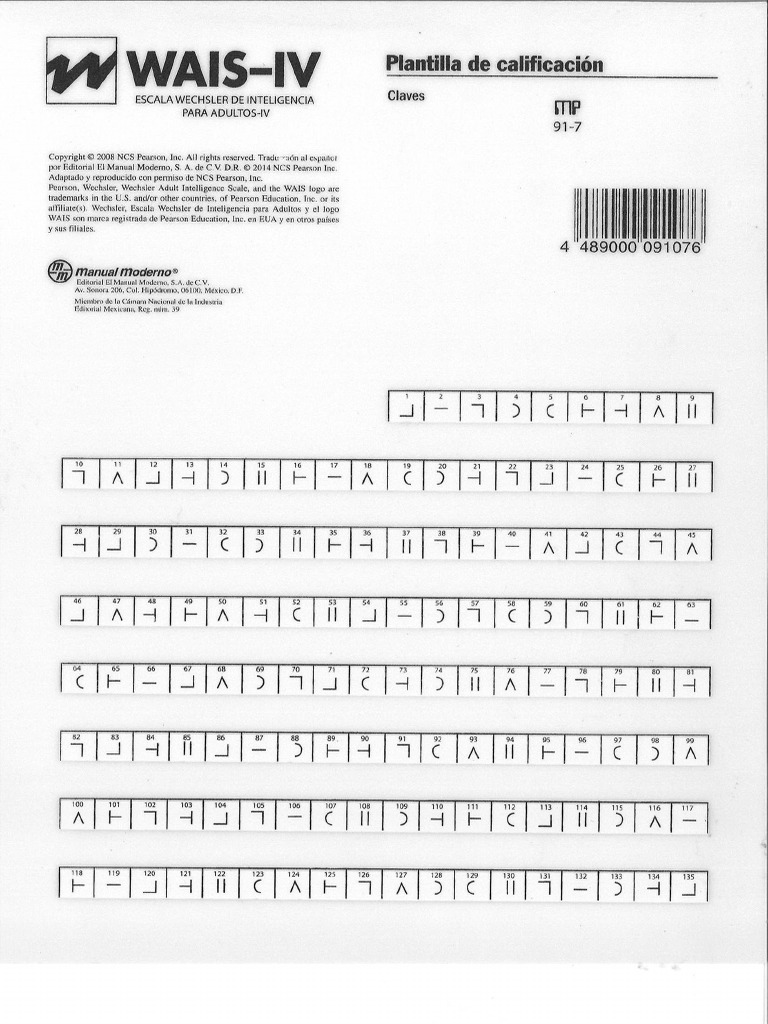 Claves y Búsqueda de Símbolos WAIS IV | PDF | Escala de inteligencia ...