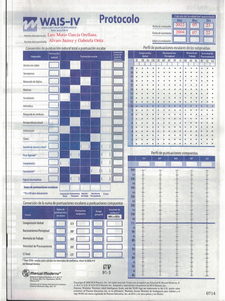 WAIS IV Protocolo AZUL - Cálculo de Edad Cronológica - Studocu