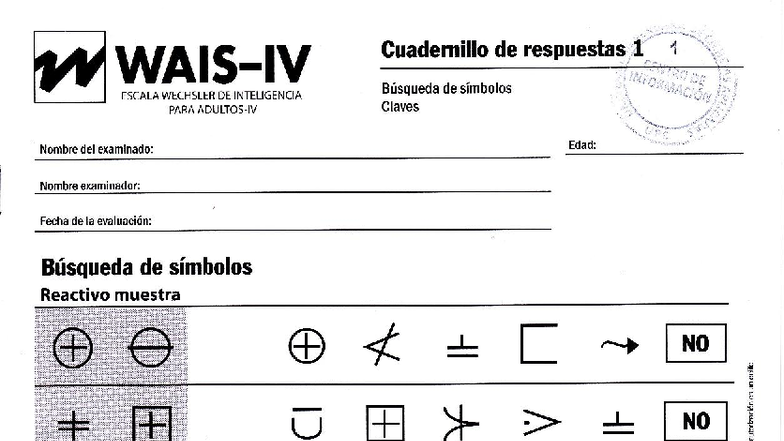 Cuadernillo de Búsqueda de Símbolos WAIS-IV - Respuestas - Studocu