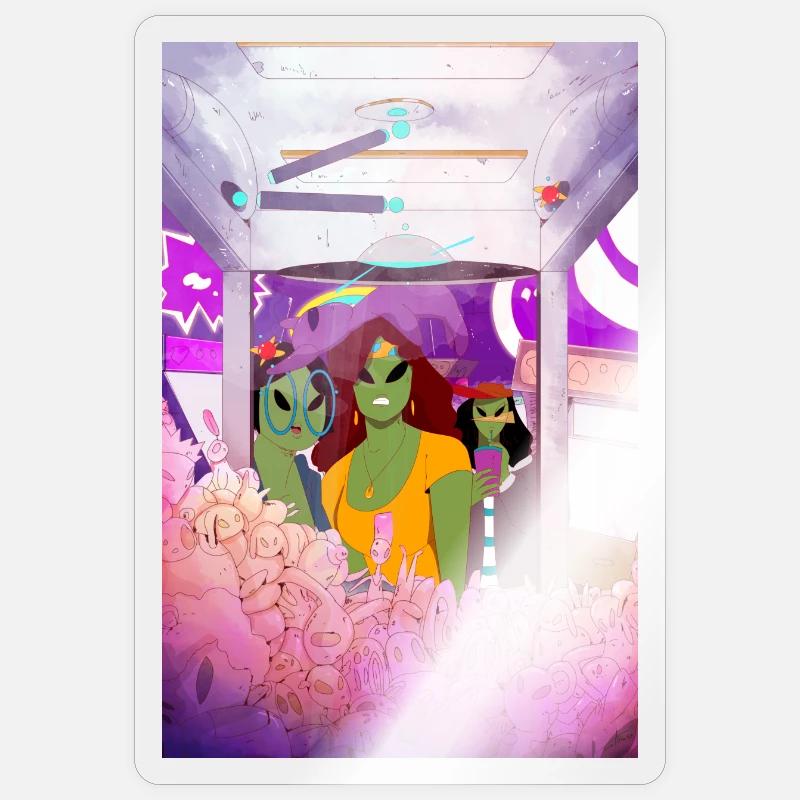 Claw Machine Vinyl Sticker, Cute Cosmic Plushie Vending Machine, UFO ...