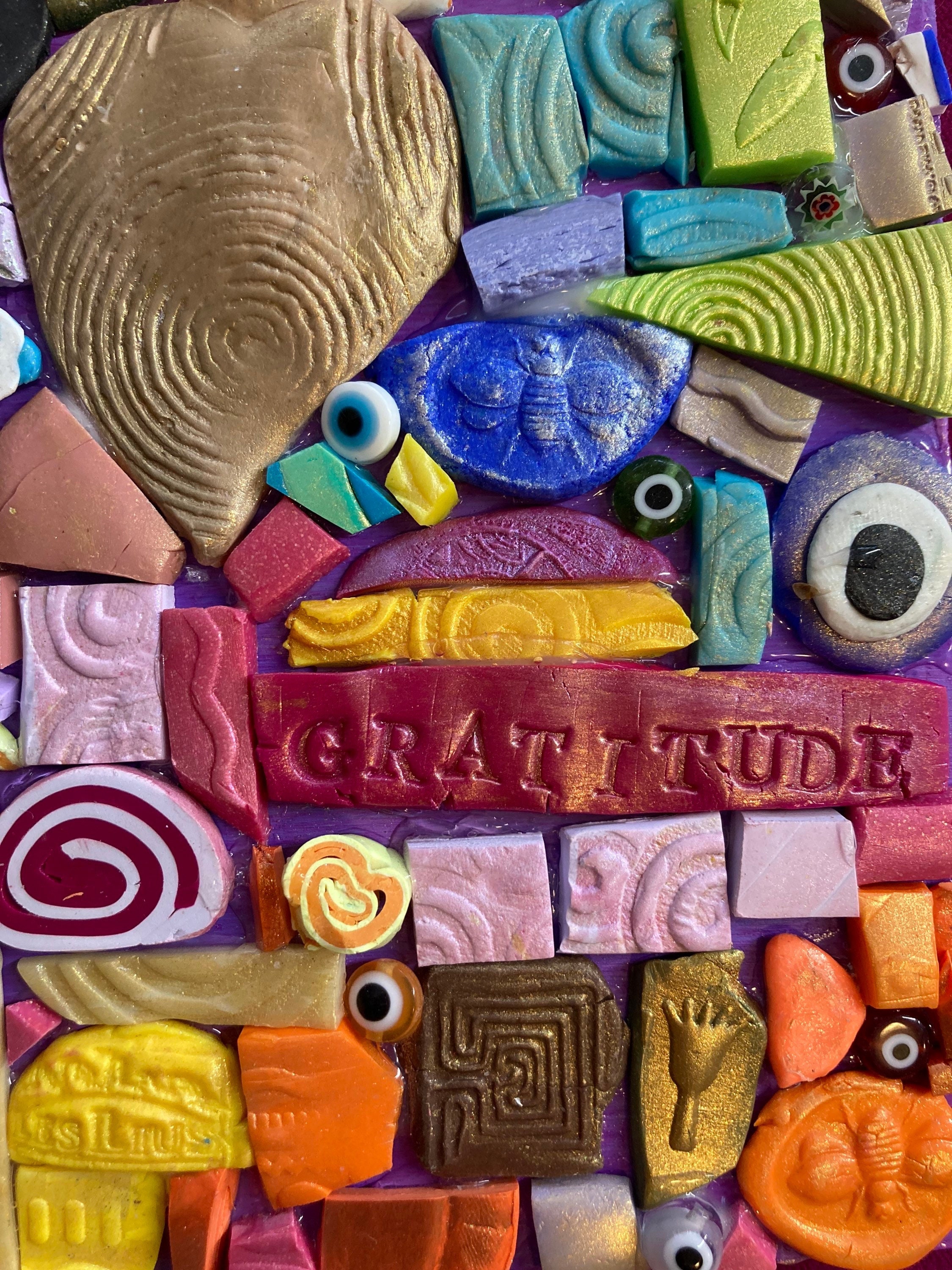 Handmade Clay Mosaic Art “gratitude ” Polymer Clay Original on Wood 6 ...
