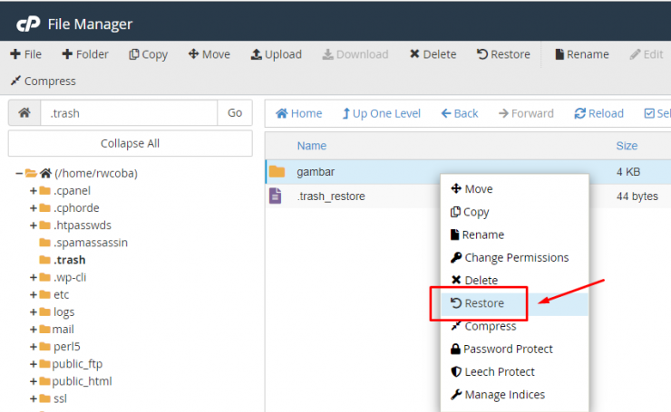 Cara Mengembalikan File yang Terhapus di cPanel dan Plesk