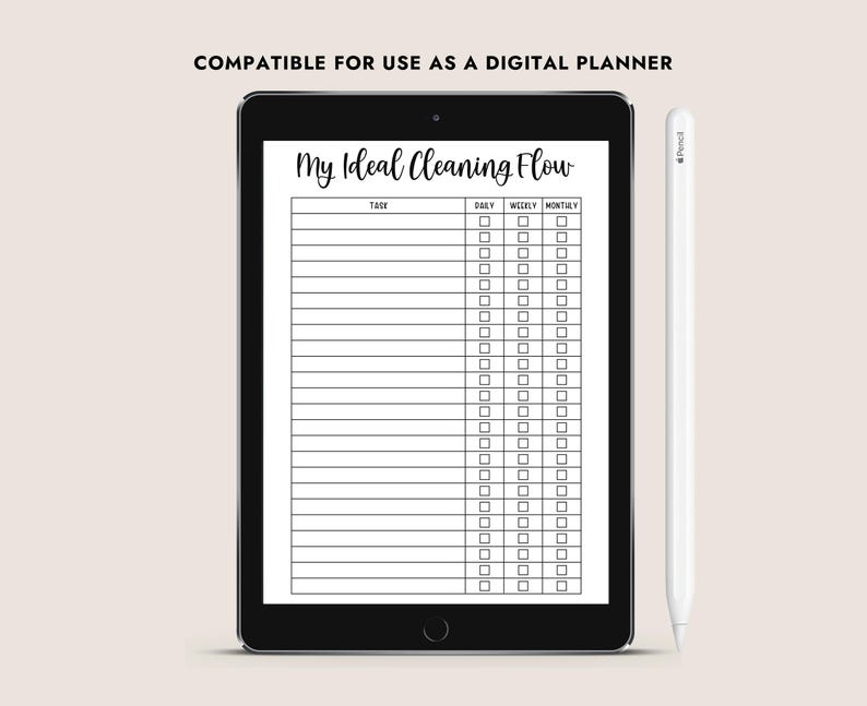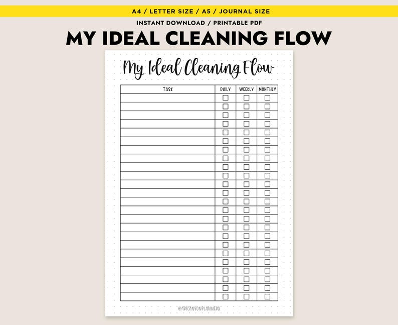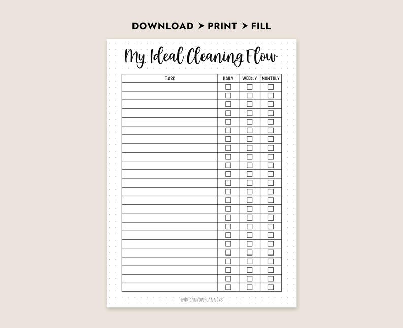 Cleaning Flow Checklist Printable Daily Weekly Monthly Chore Chart ...