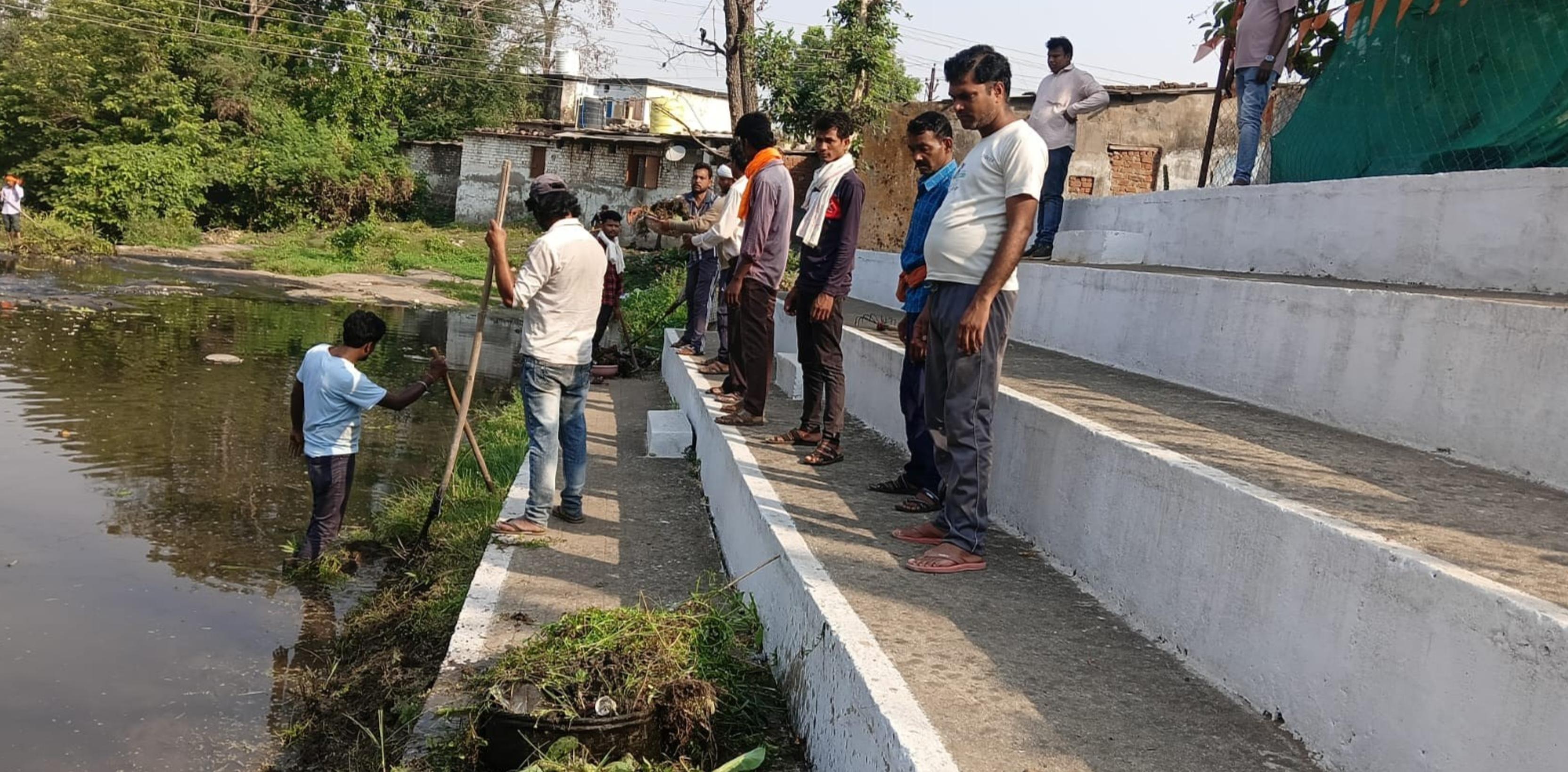 Bhujaria Ghat was cleaned in the Jal Ganga conservation campaign.