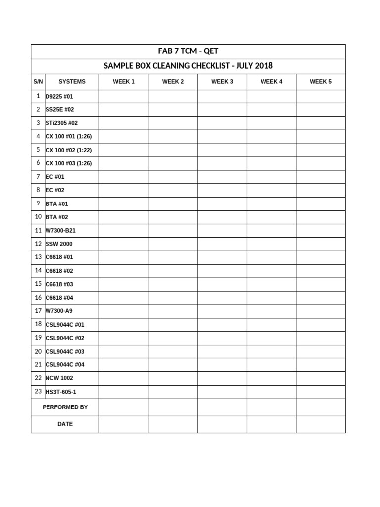 Sample Box Cleaning Checklist | PDF