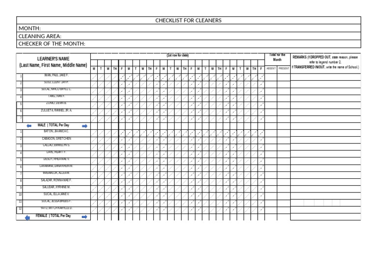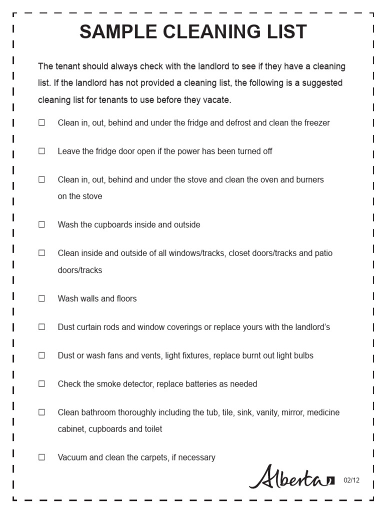Cleaning Checklist Sample at Kellie Jackson blog