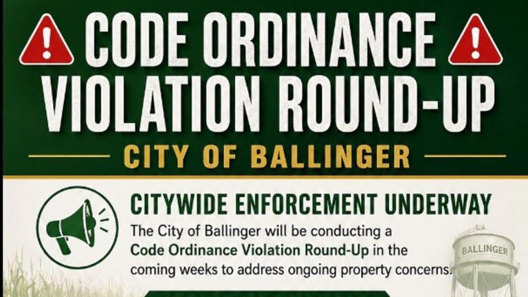 City of Ballinger announces code ordinance enforcement effort