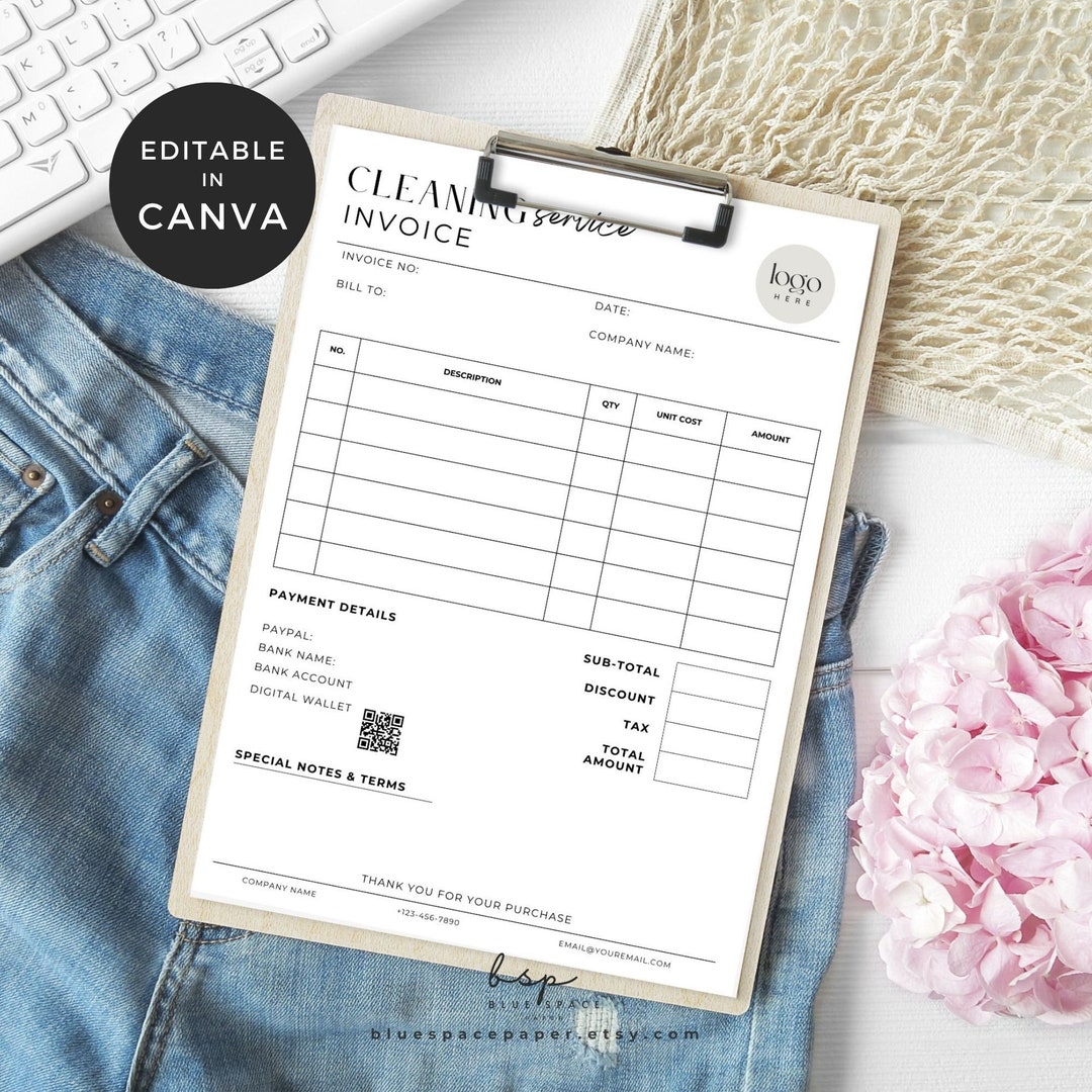 Cleaning Services Invoice Template | Fillable PDF & Canva | US Letter ...