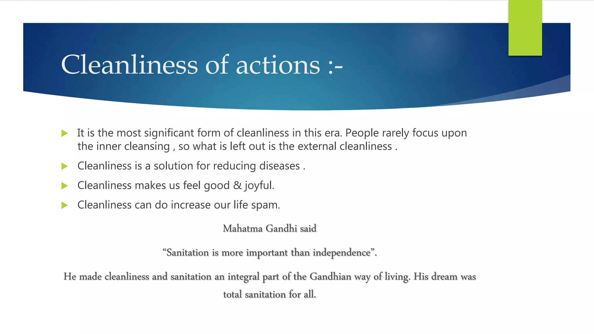 Cleanliness of thoughts and actions | PPTX