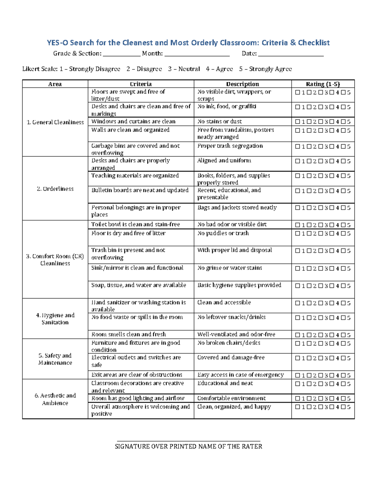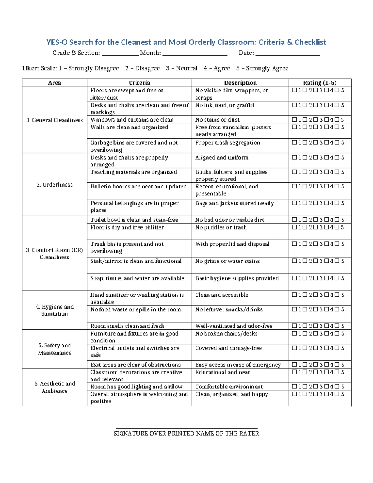 Classroom Cleanliness & Orderliness Checklist (Likert Scale) - Studocu