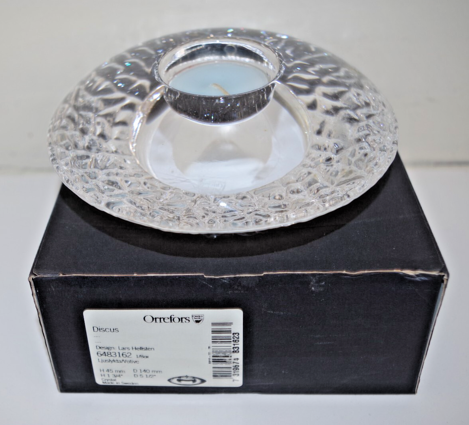 HF NIB Lars Hellsten Orrefors Clear Discus Votive One Candle Holder | eBay